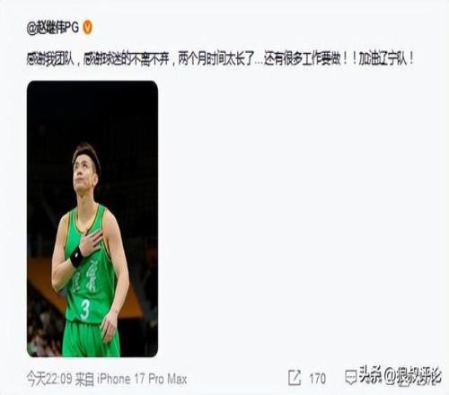 今年夏天,赵继伟与辽宁队达成顶薪续约,这也被誉为是赵继伟巅峰年龄段,最后一份大合同,他大概率会在辽宁结束职业生涯。