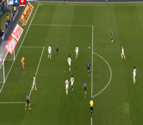 第9分钟,布格尔任意球直接破门,霍芬海姆1-0勒沃库森