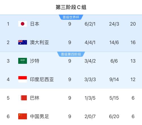 目前,世预赛亚洲区第三阶段方面,日本6胜2平1负积20分,位列C组第一,已确定进入2026世界杯;印尼3胜3平3负积12分,位列C组第4,已确定晋级世预赛亚洲区第四阶段的6强战。